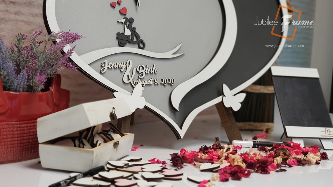 Fiecare articol Jubilee Frame este conceput ca un Guest Book unic, fiind realizat exclusiv din materiale lemnoase.