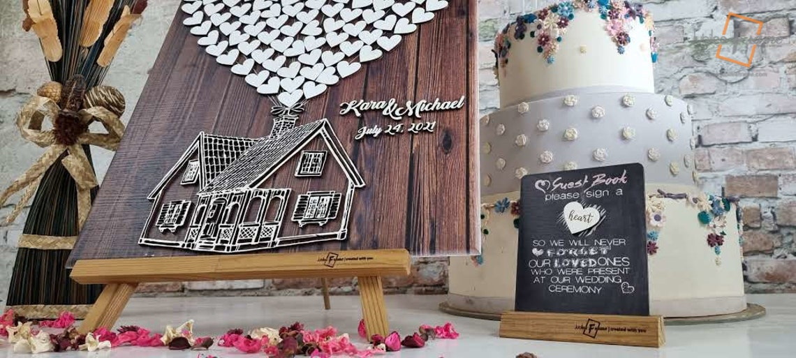 Fiecare articol Jubilee Frame este conceput ca un Guest Book unic, fiind realizat exclusiv din materiale lemnoase.